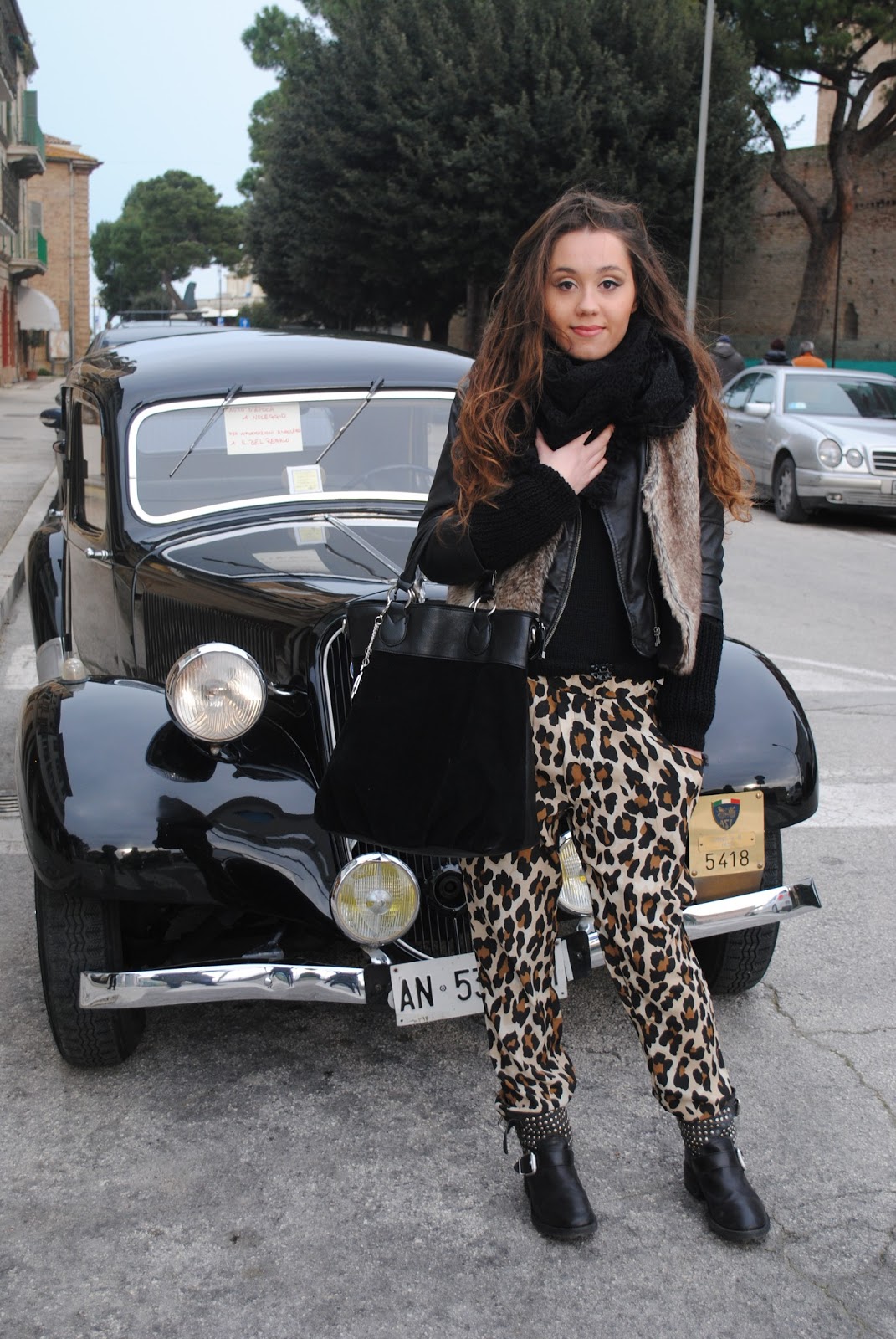 Io lo adoro, specialmente i pantaloni, così comodi ma così glam, abbinati a un maglione nero di lana ( il mio handmade) giubbetto in pelle nero con sopra gilet di pelliccia, biker con borchie, borsa Rocco Barocco e.......pronti per una bellissima passeggiata in centro...!!!!